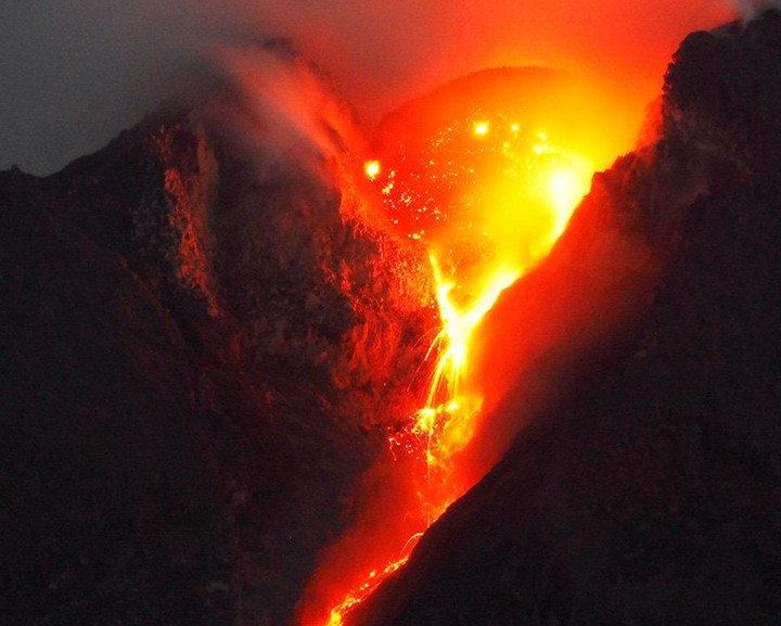 默拉皮火山位于印度尼西亞爪哇島的中部。在日惹東北32公里,海拔2911米,默拉皮意為“不滅之火”,是一個錐形火山,也是印度尼西亞活動性最強的火山,1006年首次爆發(fā),山頂粉碎,毀滅了中爪島的一個王國。埋沒世界七大奇觀之一的婆羅浮屠佛塔。1548年以來又噴發(fā)68次,平均兩三年噴發(fā)一次,每次都有傷亡。火山距離日惹市相當近,山麓居住著幾千人,有的村莊在海拔1700米的高處,當?shù)鼐用褡裥幸环N古老的儀式,每年都在火山口旁邊牲口供祭,以期安撫默拉皮山的神靈,但死亡依然頻頻降臨。由于其威脅人類居住地的安全,被國際地球化學和火山學協(xié)會列為應當加強監(jiān)督與研究的全球16座火山之一。