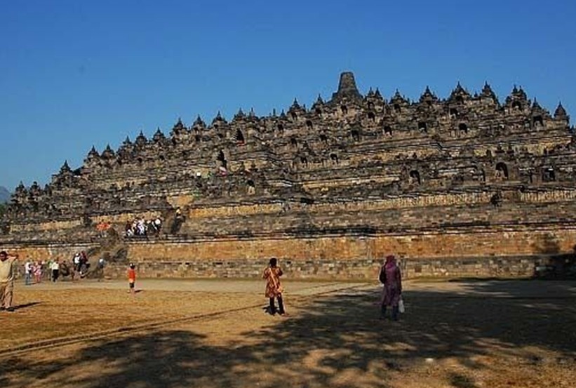 婆羅浮屠位于印度尼西亞,大約于公元750年至850年間,由當時統治爪哇島的夏連特拉王朝統治者興建。“婆羅浮屠”這個名字的意思很可能來自梵語"Vihara Buddha Ur",意思就是“山頂的佛寺”。后來因為火山爆發,使這佛塔群下沉、并隱蓋于茂密的熱帶叢林中近千年,直到19世紀初才被清理出來。與中國的長城、印度的泰姬陵、柬埔寨的吳哥窟并稱為古代東方四大奇跡。