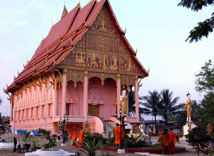 進入萬象市區,給人的感覺是,街道并不十分寬闊,但市面很熱鬧。街道兩側盡是商店,其中以百貨、飲食、照相和服裝商店為最多。每個商店的店面裝飾講究精致,并且各有特色。街道上小汽車、摩托車、三輪車交叉往來,絡繹不絕。更為有趣的是,偶爾可以看到木輪子跟人差不多高的牛車悠閑而過,給人留下的是一種異常古樸的印象。每當天蒙蒙亮,整座城市還未完全從沉睡中清醒過來的時候,許多腦后打著別致的發髻,下身穿著鑲有金線銀線織成的花邊筒裙的老龍族婦女、老聽族婦女和穿著花邊襯褂、頸戴銀環的老松族婦女以及華僑婦女提著竹籃紛紛上市采購。版權所有山東聊城聊之旅國際旅行社有限公司,轉載必究!萬象市內設有多處清晨市場,而以市區中心東西兩端的大型早市最為熱鬧,除賣蔬菜魚肉的挑販外,還有賣百貨、工藝品、土特產的攤商,人山人海,熙熙攘攘。老撾居民85%以上信奉佛教,萬象市區到處都可以見到廟宇和寶塔,據說在老撾佛教鼎盛時期,市內有149座佛寺,如今保留下來的有34座。這些古老的佛寺,精美的佛塔以及精湛的浮雕都是老撾古代文化的寶貴遺產,而最著名的是市區北面5公里的塔鑾。凡是到萬象的外國游客,總要靠名游覽塔鑾,因塔鑾被視為老撾眾多名勝古跡中的奇觀,是瀾淪時代文化的杰作。塔鑾,無論是外形還是大小,都很類似中國的白塔,不過它是金色的,四周有30個小塔環抱,遠遠望去,高高聳立,據說塔鑾下面埋有佛祖釋迦牟尼的一根頭發(另說是一塊佛骨),在老撾人心目中是非常神圣的地方。老撾民間每年要舉行“塔鑾節”,類似中國的廟會。