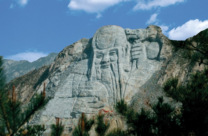 位于龜蒙頂西北側,從龜蒙頂沿臺階步游路可直達拜壽臺,由此即可看到對面山崖的壽星巨雕。壽星巨雕是利用天然裸巖依山雕刻,由中央美術學院教授設計,采用明朝末年定型的壽星形象,雕像面南,為半身像, 高218 米, 頭部高108米,大腦門,白須飄逸長過腰際,一手拄鳩杖,一手托仙桃,慈眉善目, 笑逐顏開。雕像通過藝術上的虛幻處理,近看親切安詳,遠看氣勢雄偉,給人以神秘之感,為養(yǎng)生長壽勝地蒙山旅游的標志性景點,其規(guī)模之大為世界之最。