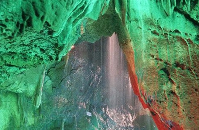 然而,進入洞中的人們卻發出了一長串慨嘆。洞中博大精深。似巨龍扭轉的洞體,氣貫長虹而又時現玲瓏和雅致。地面已由人工鋪筑了水泥,兩側護欄纏繞,洞中小溪潺潺流淌。空中乳石滴垂,有的如筍向上飛穿,也有的似瀑流空垂高掛。洞頂如魚脊背,漸慢成一線,有的如牛角斜出,旋轉成小洞,稱為“天眼”。有的地方空中又搭懸橋,出現洞中懸洞。主洞寬處可容奔卡車,側洞、支洞的狹窄處游人只能俯身低眉,甚至要匍匐前行。洞中有穹廬似的頂端如螺旋轉,向上越旋越細,直刺高空,似歐洲的古建筑潛于地下。