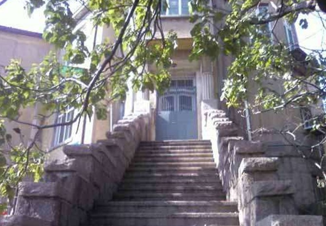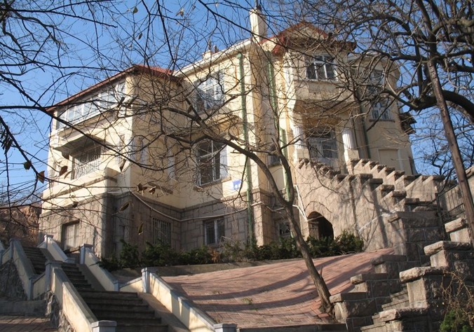 穿過兩扇雕花的鐵柵欄大門,正對著大門的是一段寬敞的沿地勢而建的臺階,拾階而上,臺階向兩邊分開,之后繞過一面造型古樸的壁墻,進入高處的院內,再通過石階才能進入居室。洪深故居是一座二層樓的德式建筑,高大的門廳,拱形窗戶,青磚灰瓦,歌特式的屋頂,十分的寬敞和氣派。通過后來的了解,這處洪深舊居也正是青島現代文化名人故居中,最為“闊綽”的一處。
