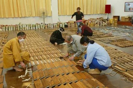 藏經(jīng)殿在鐘樓東南側(cè),建于清順治十六年,內(nèi)存自宋朝以來(lái)歷代皇帝御賜的各種經(jīng)書,加上本寺刻印的經(jīng)書共20346冊(cè),放在十二個(gè)大櫥內(nèi);其中有清康熙到乾隆年間御賜的經(jīng)書《明朝南藏》、《明朝北藏》、《清朝梵本》、《書本藏》、《日本敘藏》 以及御筆《藥師經(jīng)》等幾千部。
