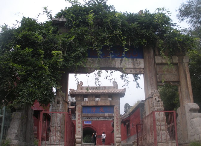 孔子登臨處位于泰山一天門北,為四柱三門式跨道石坊。古藤掩映,典雅端莊,額題“孔子登臨處”五大字。明嘉靖三十九年 (1560)始建。柱聯曰:“素王獨步傳千古,圣主遙臨慶萬年”。坊兩側分立兩碑,東為明嘉靖間濟南府同治翟濤題“登高必自”碑;西為巡撫山東監察御史李復初題“第一山”碑。北側為兩柱單門的“天階”坊。