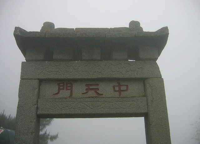 中天門位于黃峴嶺脊背之上,海拔847米。黃峴嶺因其土色黃赤而名,黃峴嶺東面為中溪山,1989年臺胞陳英杰捐資在山巔建慈恩亭,亭內(nèi)放置澎湖同胞捐贈(zèng)的澎湖石,上書碑文,表達(dá)希冀海峽兩岸早日一統(tǒng)之愿。