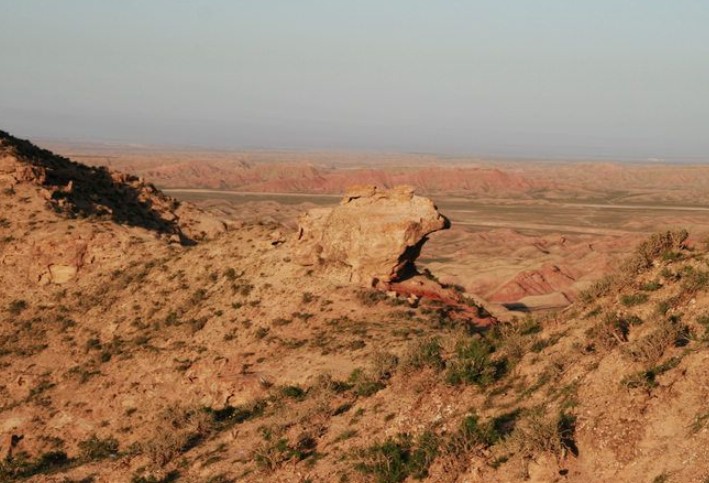 關(guān)于這幾處景致,當(dāng)?shù)厝司幜撕苊赖墓适拢耗切┖芏鄬訉酉喁B的山峰就像經(jīng)書,那是唐僧師徒四人歷經(jīng)千辛萬苦取回來的,特意存放在這里,還派孫悟空守護(hù)。天性活潑調(diào)皮的猴兒怕自己寂寞,就帶著青蛙、老鷹、駱駝與自己做伴。豬八戒兄弟情深,不忍讓師兄獨(dú)自留守這里,于是也隨后跟來了。編故事的人一定很熱愛額日布蓋這個(gè)地方,才有了這樣富有想象力的故事,其中寄托的美好情感不言而喻。