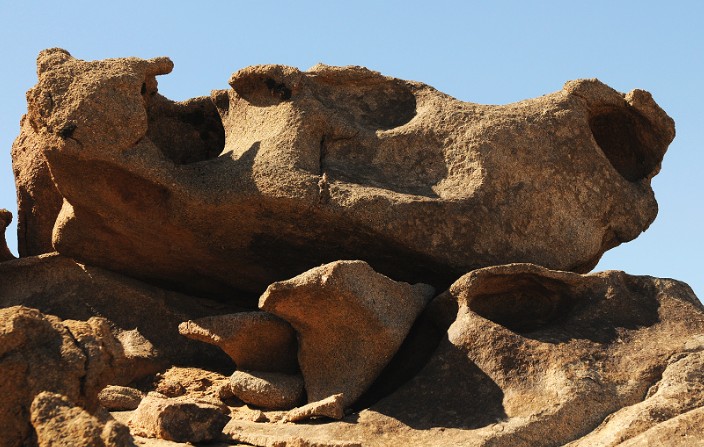 海森楚魯怪石城位于阿拉善右旗努日蓋蘇木境內,距旗府所在地220公里。“海森楚魯”為蒙語音譯,意為象鍋一樣的石頭。在方圓二十余公里的地方,大到幾十立方,小到拳頭大小的風蝕原石隨處可見, 怪石林立,形態各異,有象臨空欲飛的碩大雄鷹,有象“蘑菇云”……各式各樣,栩栩如生,與云南石林,黃山怪石相比也并不遜色,使人感到大自然神賜般的無窮魅力。