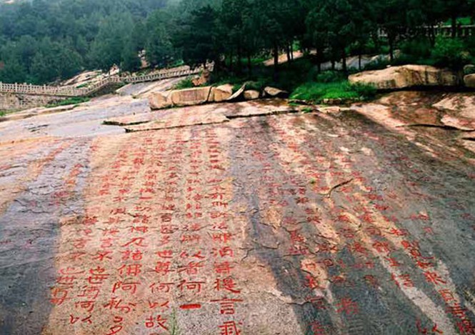 在泰山中路的“經(jīng)石峪”山谷,有一座石亭,名為“高山流水亭”該石亭為明代建筑,建于隆慶六年(1572年),據(jù)今已有429年的歷史。據(jù)《岱覽》中記述:“伯牙游于泰山之陰,卒遇暴雨,止于巖下,援琴而鼓之。”《列子•湯問篇》中說,“伯牙鼓琴志在高山,鐘子期曰,善哉,峨峨兮若泰山,志在流水,”并因此而建此亭,并命名為“高山流水亭”。 石亭全部為石質(zhì),通高3.3米,寬兩米,為正方形,周邊四根石柱,下有四根踢腳石,上面石橫梁、插板、脊石橫梁各四根,亭頂坡面極平緩,頂部有一四方形石脊。亭內(nèi)橫梁上方刻有“高山流水亭”之字。亭外橫梁上方寫有“源頭活水”,正面右柱上書有“天門倒瀉一簾雨”,左為“梵石靈呵千載文”之字。意思是說,下雨時,雨水猶如天門上倒下的水簾,水簾漫過“經(jīng)石”時,似乎在大聲吟詠石上的千年佛經(jīng)。“高山流水亭”上方有巨幅石刻《高山流水亭記》,詳細(xì)記載了“經(jīng)石峪”水簾的生動和該亭建立的經(jīng)過。“高山流水亭”建立之后,當(dāng)時有人在此觀景,版權(quán)所有山東聊城聊之旅國際旅行社有限公司,轉(zhuǎn)載必究!并形容之:“瀑流千派,飛噴字畫,上構(gòu)石亭一,寬容數(shù)人,危壁在后,雪浪在前,每風(fēng)鳴雨響,萬籟俱怒。”明代山東巡撫李戴有詩專門描寫該亭:“壁立石屏向日明,小亭危坐午風(fēng)清,彈琴人去知何日,尚有高山流水亭。”