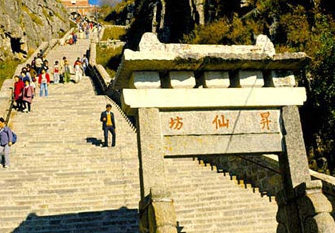 升仙坊位于山東省泰山中路緊十八盤的起始處,為兩柱單門式石坊,額題楷書“升仙坊”。此處山勢陡峻,懸崖峭壁,上臨岱頂天庭,咫尺仙境,似有飄然升仙的意境,故名“升仙坊”。游人至此小憩,每每浮想聯(lián)翩。回視山下,常有騰身云霄之感,舉首仰望,南天門近在眼前,奮力攀登,岱頂在望。