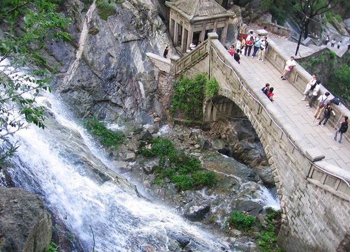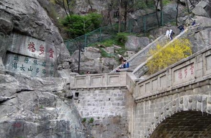 泰山旅游景點之一:在快活三里北首的云步橋,原來是木橋,叫雪花橋,民國年間改建石橋。這里林木茂盛山谷深幽,常為云霧籠罩,因此楊承訓(xùn)題名“云步橋”。