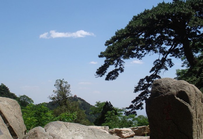 大夫松位于泰山云步橋北側(cè)的五松亭旁。登山盤路至此,有石坊赫然而立,額題“五大夫松”。坊西古松既為五大夫松,又稱“秦松”。“秦松挺秀”為泰安八景之一。在這里可遙望十八盤、南天門,只見(jiàn)兩山對(duì)峙,萬(wàn)仞中鳥(niǎo)道百折,云蒸霞蔚,迷離耳目衣袂之間;松濤陣陣,傳千谷萬(wàn)壑不絕。在這里還可以下望云步橋,只見(jiàn)水流潺潺,陡然入澗,瀑水懸流,濺花瀉珠,風(fēng)響水鳴,萬(wàn)籟俱寂,風(fēng)景之秀麗之清幽無(wú)言以表。