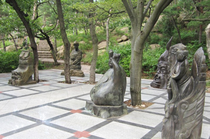 位于張保皋南面的赤山明神銅像,高33.8米,總投資4500萬元,占地十二萬平方米。由大明圣境、仙人棋盤、東峰觀景臺、明神銅像及其它附屬建筑組成。大明圣境牌坊題名由著名書法家劉炳森題寫。牌坊南墻的青銅浮雕“眾仙朝神”眾仙列班朝拜,聽候赤山明神號令的情景。“仙人棋盤”由“神閑氣定”、“運(yùn)籌帷幄”、“成竹在胸”、“觀戰(zhàn)之悅”、“駕鳳臨仙”、“悔恨難解”六個人物小品組成。版權(quán)所有山東聊城聊之旅國際旅行社有限公司,轉(zhuǎn)載必究!主要內(nèi)容是各路神仙會聚赤山對弈的場景。人間的棋局,竟然讓天上的神仙情不自禁,于是,喜怒哀樂溢于言表,性情體態(tài)栩栩如生。“赤山明神”銅像高58.8米,面朝浩瀚的黃海,雄壯威武。赤山明神亦稱赤山神,相傳明神本相出于赤山紅門洞。赤山明神威鎮(zhèn)四海,法力無邊,守護(hù)鄉(xiāng)土,福佑大千,功德無量,乃華夏北方庇佑之神。始皇并六國,于贏政二十八年(公元前219年)東巡成山,以求長生不老之藥。途大病,李斯遽祈明神,旋無恙。唐高宗顯慶五年(公元660年),唐政府幫助新羅人(今韓國)打敗高麗和百濟(jì),統(tǒng)一朝鮮半島,自此唐和新羅非常友好,關(guān)系密切。很多新羅人來到唐朝學(xué)習(xí),做官,做生意,出苦力,當(dāng)兵,做船工,當(dāng)奴婢,有的長期居住在中國,主要分布在東南沿海和大運(yùn)河沿岸地區(qū),特別是和新羅僅一海相隔,相距不足200海里海上交通樞紐赤山浦(今石島灣),居住的新羅人就更多了。法華院宣講《法華經(jīng)》時,“四方眾信及有緣施主都會聽,道俗老少尊卑都是新羅人。”(據(jù)《入唐求法巡禮行記》一書)為了對新羅人進(jìn)行管理,特設(shè)了“勾當(dāng)新羅所”。新羅人除去赤山法華院參拜佛祖,祈求保佑外,也去紅門參拜赤山神。尤其在赤山法華院建立之前和拆毀之后,主要參拜的是赤山神,赤山神也就不分國界施恩于新羅,因此新羅人就把他當(dāng)作自己的神。稱之為“新羅神”大韓民國文化部、海運(yùn)航海廳、全羅南道韓國文化藝術(shù)振興院編著的《張保皋》一書中說:“有關(guān)日本九州博多太守府的史書記載,圓仁弟子按照宗師遺囑建立的比睿山赤山禪院里繪制的‘新羅神’臨近寺剎(例:圍城寺和三井寺)里供奉的新羅國的‘大明神’等有關(guān)記載,都明確無誤地說明了張保皋人把日本比睿山赤山禪院里供奉的‘赤山神’當(dāng)作自己的神——‘新羅神’了。該書還說:“在博多太守府內(nèi),常駐有許多從事貿(mào)易的新羅人,而在此之前,就定居在九州一帶的新羅人,也多從事貿(mào)易業(yè)。”張保皋對日本的影響,在其后日益明顯,如前所述的赤山禪院比睿山周圍的寺剎里,供奉的象征著保護(hù)財(cái)富,帶來運(yùn)氣,保護(hù)航海安全的“新羅神”(赤山神),說明新羅人以及張保皋所組織國防貿(mào)易船隊(duì),是把“赤山神”當(dāng)作自己神了。唐文宗開成三年(公元838年),東瀛天臺宗三世座主圓仁(慈覺大師)隨遣唐使赴唐求法數(shù)載,曾三赴赤山拜謁。歸途中,于滄海屢遭劫難,幸明神顯靈,方化險(xiǎn)為夷,且保全經(jīng)典數(shù)百卷。圓仁歸國,遂以赤山明神為天臺宗庇佑之神供奉,其后弟子秉承其旨意,于京都修一寺院,名之曰:“赤山禪院”。而后,赤山明神漸為東瀛等國所崇拜,乃至波斯、大食等區(qū)域。至今,日本、韓國等寺院仍多供奉赤山明神,以福佑天下,普渡蒼生。 據(jù)《后漢書》載,赤山明神是中國古代原北方系鮮卑族之保護(hù)神。版權(quán)所有山東聊城聊之旅國際旅行社有限公司,轉(zhuǎn)載必究!他不僅是中國民間的保護(hù)神,也是日本、韓國,甚至波斯、大食(阿拉伯)等諸多國家民間的保護(hù)神。尤其是韓國、日本的許多禪院里如今仍供奉著赤山明神。