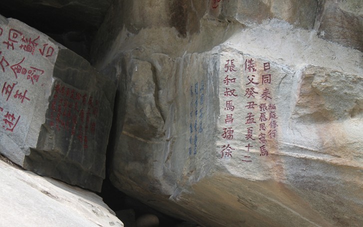 北宋皇?三年(1051年),時任舒州通判的王安石與弟王安國游覽山谷,坐石聽泉,寫詩以詠其勝。現(xiàn)存題名刻石文字為“皇?三年九月十六日自泉州之太湖過寺宿,與道人文銑、弟安國擁火游見李翱習之書,坐石聽泉久之,復游,刻習之書后,臨川王安石。”所賦六言詩為:“水無心而宛轉(zhuǎn),山有色而環(huán)圍,窮幽深而不盡,坐石上以忘歸”。這位被譽為中國11世紀的改革家的王安石,在掀起神宗變法大潮之前,版權(quán)所有山東聊城聊之旅國際旅行社有限公司,轉(zhuǎn)載必究!居然有閑情逸致,于此寧靜聽泉。這上物證的發(fā)現(xiàn),當有助于人們研究他的思想變化的歷程。北宋無豐三年(1080年),著名書法家黃庭堅也曾至山谷攬勝。他在游覽了山谷寺、石牛洞之后,一連寫了《青牛篇》、《書石牛溪大石上》、《題靈龜泉石上》、《題山谷大石》等詩文。他酷愛此地山水,因此自稱山谷道人。以曾坐在山溪石牛上,讓大畫家李公麟為之畫像。在石牛洞東側(cè)懸崖頂端,尚存一處由黃庭堅手書的楷書題名:“李參、李秉夷、秉文、吳擇賓、丘揖觀余書青牛篇,黃庭堅庚中小寒”,書法工整穩(wěn)健,筆鋒堅勁,波磔分明,是傳世稀少的黃氏真跡,彌中珍貴。