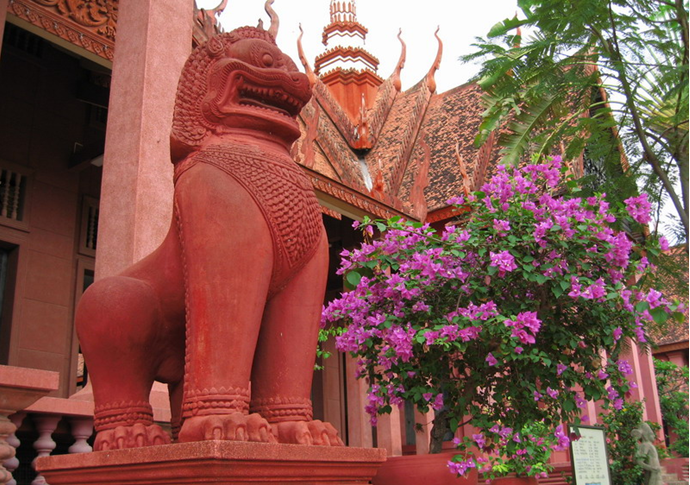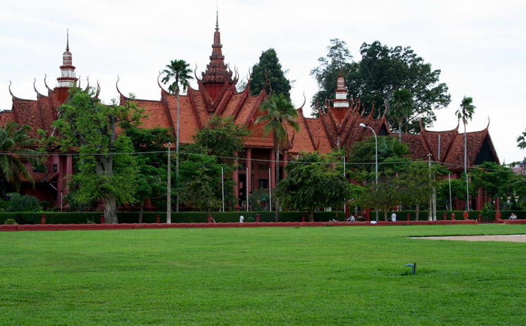 金邊國立博物館是柬埔寨最著名的博物館。在金邊舊王宮北鄰。1917年法國人G。格羅里葉設計并開始興建,1920年建成。博物館由主館和圍繞中庭的 3個陳列館組成。主館為朱紅色的高棉傳統建筑,收藏高棉民族遺留下來的印度教及佛教的石雕,主要是 6~15世紀的作品,是研究高棉雕刻發展史的重要資料。陳列有石雕像、青銅像、石碑、陶器、金屬工藝品以及19、20世紀王室的日用品和樂器等。