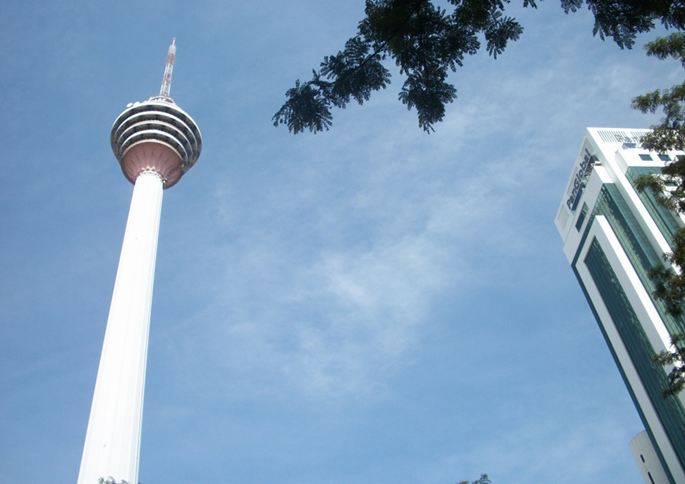 吉隆坡塔是世界最高的一座鋼筋水泥構筑的高塔,塔高421米,使用了45,000立方米水泥。登上吉隆坡塔(Menara Kuala Lumpur)的瞭望臺,從這座東南亞第一塔從容地俯視繁忙的吉隆坡,竟有眾人皆忙我獨閑的笑看江湖念頭。放眼望去,群山環抱,加上巴生河與鵝麥河的交匯,孕育了吉隆坡的人杰地靈;青翠的遠山露出橙色傷疤,那是發展的印記了。