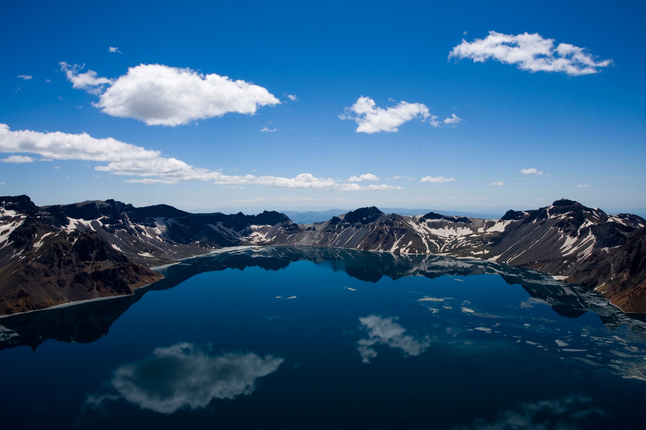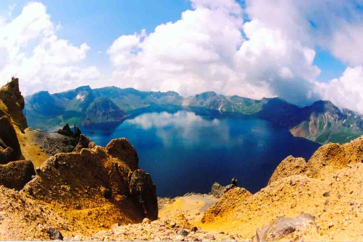 長白山天池位于長白山主峰火山錐體的頂部,是一座火山口,經(jīng)過漫長的年代積水成湖。長白山天池海拔2189.1米,比新疆維吾爾自治區(qū)的天山天池高209米。天池略呈橢圓型,南北長4.4公里,東西寬3.37公里。集水面積21.4平方公里,水面面積9.82平方公里,水面周長13.1公里,平均水深204米,最深處達373米。總蓄水量20.4億立方米。天池水溫為0.7°C——11°C,年平均氣溫7.3°C。天池像一塊瑰麗的碧玉鑲嵌在雄偉的長白山群峰之中,它是中國最高最大的高山湖泊。是東北三條大江——松花江、鴨綠江、圖們江的發(fā)源地。柔美的天池白云繚繞,五色斑斕波光嵐影,群峰環(huán)抱,蔚為壯觀。天池上空氣候多變,多云、多霧、多雨、多雪,云、霧、雨、雪把天池不僅裝點得美麗動人,而且更加虛幻神秘,迷迷茫茫。尤其盛夏季節(jié),風(fēng)雨不定,變化頻繁,有時一日之內(nèi),甚至一小時之內(nèi)就可能發(fā)生幾次變化,剛剛還是驕陽直射、焦灼烤人,忽然間狂風(fēng)大作、黑云滾滾、電閃雷鳴,大雨傾盆,山峰、湖面傾刻間淹沒在風(fēng)雨之中了……一會又風(fēng)和日麗,山峰、湖面又重新展露出來。雨后天池景色格外迷人,池邊群峰競秀,山野如洗;池上霞光萬道,長虹當(dāng)空;池中奇峰倒映,波光粼粼。天池上空經(jīng)常云霧繚繞,置身其中使人頓覺騰云駕霧一般,白云在腳下飄逸。給人一種神秘莫測、飄飄欲仙的美感。有時還會出現(xiàn)池東日出池西雨,山上大雨,山下晴的奇異景觀。