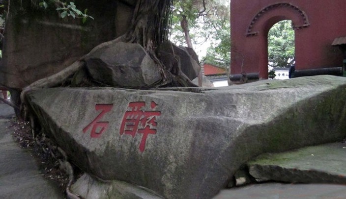 鳴弦泉左,有一斜立巨石。舊傳李白曾來這里飲酒聽來,樂而忘返,醉臥此石。故名“醉石”。