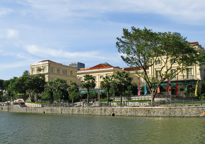 1864年建於皇后坊的亞洲文明博物館 (Asia Civilisations Museum),早期是英國殖民地以及現(xiàn)任政府的辦公大樓,有著濃厚的英式新古典主義風(fēng)格的建筑。進(jìn)入該博物館內(nèi),重點在介紹新加坡歷史源流,當(dāng)游人進(jìn)入展廳,曾是沿著新加坡河岸發(fā)展的新加坡,不斷有中國帆船、印度船、 阿拉伯獨(dú)桅帆船、葡萄牙戰(zhàn)艦和武吉士人(Bugis)的縱帆船造訪這個質(zhì)樸的海港,館內(nèi)過往的影像面對窗外運(yùn)河龐大商船吞吐的海港,今非昔比的繁華景象,形成了一個強(qiáng)烈的對比。這就是亞洲文明博物館企圖讓訪客深入了解新加坡的特殊文化。19世紀(jì)英人萊佛士爵士為拓展英國在亞洲的貿(mào)易發(fā)展,奠定了這個小漁港的未來發(fā)展。