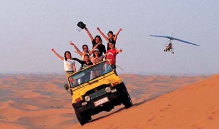 特別是沙海沖浪,是游人進(jìn)入月亮湖景區(qū)所必須嘗試和接受挑戰(zhàn)的項(xiàng)目,也是驚險(xiǎn)和極富刺激的項(xiàng)目。在沙海沖浪中,司機(jī)以其嫻熟的車技將越野車從一個(gè)沙丘頂端沖向另一個(gè)沙丘的頂端,在頂端——深谷——頂端那瀚海沙浪的大起大落中讓游人感受疾速升降運(yùn)動所帶來的那種無法自控的驚險(xiǎn)刺激。在飛馳的車?yán)?,生命會徹底得到放松,人從心靈深處會感到擁抱大自然的那種快樂和欣慰。這里已成為現(xiàn)代都市人體驗(yàn)原生態(tài)大自然,感悟生命,洗心靜思的心靈休閑勝地。