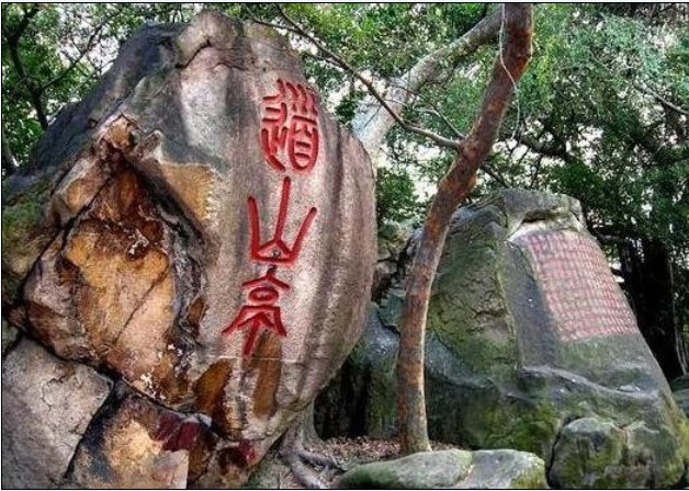 道山亭周邊古木參天,濃陰郁郁;怪石嶙峋,有宋、元、明代摩崖題刻十余段。亭南側的一株古榕,頑強地生長在石徑旁的崖壁上,稱“瀑布榕”,樹齡百年以上,被列為福州市二級保護古樹。古榕主干胸圍6米多,離地面不到1米半即一分為三。樹高不過15米,但支干發達,超過18支,大多彎向南側,沿著陡峭的石壁高抬低走,向下斜伸十幾二十米,部分支干覆蓋道山亭,整個樹冠呈倒人字形,猶如一把撐天大傘,大樹底下好乘涼。古榕氣根不僅多,而且條條氣根與古榕主干、支干相互連體;樹根為尋求水分、養料,網裹著巖壁攀延十數米,好似瀑布在平滑的巖石面傾瀉而下,蔚為壯觀,“瀑布榕”因此而名。道山亭西側有塊自然天成的花崗巖石,高2米多,形狀似大印章,西向篆刻“天章臺”三個大字,為程師孟所書。天章臺為烏石山三十六奇景之一。道山亭東側的兩塊東西并列的蛤蟆石,有兩人多高,仿佛兩只蹲姿蛤蟆,活靈活現。版權所有山東聊城聊之旅國際旅行社有限公司,轉載必究!其中一只瞪大眼睛仰望天空,另一只上半段為雷所劈,傳說它原來成天想吃天鵝肉,被雷劈去半個頭,剩下一只也就不敢亂動了。程師孟篆書“道山亭”三個大字,鐫在東頭那只蛤蟆的胸腹處,摩崖題刻朝北向,高2.2米,寬0.85米,字徑0.7米。道山亭北側巖壁鐫曾鞏《道山亭記》全文,摩崖題刻北向,高2米,寬5米,楷書;崖題刻朝北向,高2.2米,寬0.85米,字徑0.7米。道山亭北側巖壁鐫曾鞏《道山亭記》全文,摩崖題刻北向,高2米,寬5米,楷書;2008年福州市人民政府重鐫,由書法家張潛華書寫。