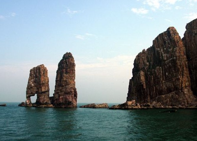 高山島,屹立于廟島群島中部西側,隸屬砣磯鎮。這個面積僅有0.46公里的無居民小島,在諸島排列中列第12位。它集海蝕崖、海蝕洞、海蝕柱、海蝕礁、海蝕階地和海積卵石灘于一身;納高雄、險峻、幽深、粗獷靈秀于一隅。它裸露著胸懷,放蕩無拘地把海島的地質遺跡向世人全方位的展示,可謂長島地區地質遺跡的“天然地質公園”。
