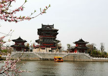 泰州是一座水的城市。水是泰州的特色和靈魂。哺育世世代代泰州人的鳳城河,千畝水域繞城四周,是江蘇省現(xiàn)存的為數(shù)不多的較完整的千年古城河。泛舟河上,您會(huì)充分領(lǐng)略到“州建南唐”的歷史厚重。鳳城河畔,望海樓、桃園景區(qū)內(nèi)30多個(gè)景點(diǎn)匯集了泰州歷史、戲曲、民俗、商賈四大特色文化。景區(qū)內(nèi)核心景觀望海樓,始建于宋,明清重建,更領(lǐng)江淮雄風(fēng),國(guó)學(xué)大師文懷沙老人稱(chēng)其為“江淮第一樓”。樓西文會(huì)堂,史載初為北宋滕子京所建。列北宋時(shí)在泰為官,而后升遷至宰相的晏殊、范仲淹、富弼、韓琦、呂夷簡(jiǎn)五相史料,堂前植“五相樹(shù)”;立中國(guó)雕塑院院長(zhǎng)吳為山所作范仲淹青銅塑像,加之以景區(qū)內(nèi)的已有千年之久的州城遺址和宋城古涵等景點(diǎn),一切盡顯泰州“州建南唐,文昌北宋,名城名宦交相重”的輝煌歷史。望海樓隔河為桃園景區(qū),取孔尚任寄寓泰州陳庵創(chuàng)作《桃花扇》之意,與泰州梅園戲劇、柳園評(píng)話(huà)相聯(lián),三園一線(xiàn),形成“戲曲文化三家村”的獨(dú)特人文旅游景觀,徜徉其中,宛若行走于中國(guó)戲曲文化之長(zhǎng)廊。景區(qū)內(nèi),鳳凰姑娘、飛來(lái)鐘、齏湯橋等一個(gè)個(gè)美麗的民間傳說(shuō)同樣使人流連忘返。桃園東側(cè)六百米長(zhǎng)的麻石老街,青磚黛瓦,展現(xiàn)了明清至民國(guó)時(shí)期的泰州古街巷,皮包水、水包皮,戲院書(shū)場(chǎng),泰州古城的草根文化在這里盡現(xiàn)。該景點(diǎn)已被定為國(guó)家AAAA級(jí)風(fēng)景區(qū)。