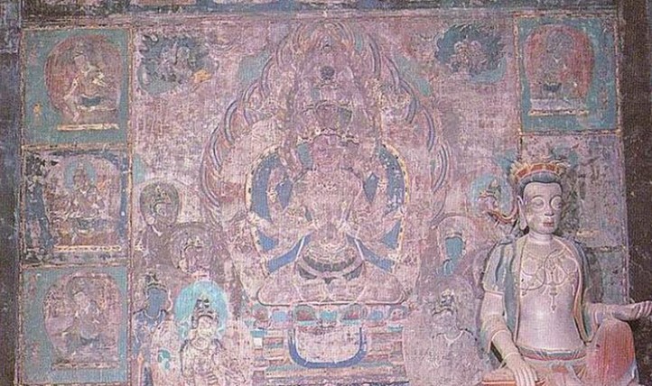 東千佛洞現(xiàn)存23窟,而留有壁畫和泥塑造像者僅10窟。其中西夏6窟、元1窟、清3窟。壁畫總面積486.7平方米。彩繪佛、道二教壁畫290幅,人物工144身,佛、道二教泥塑像46身。