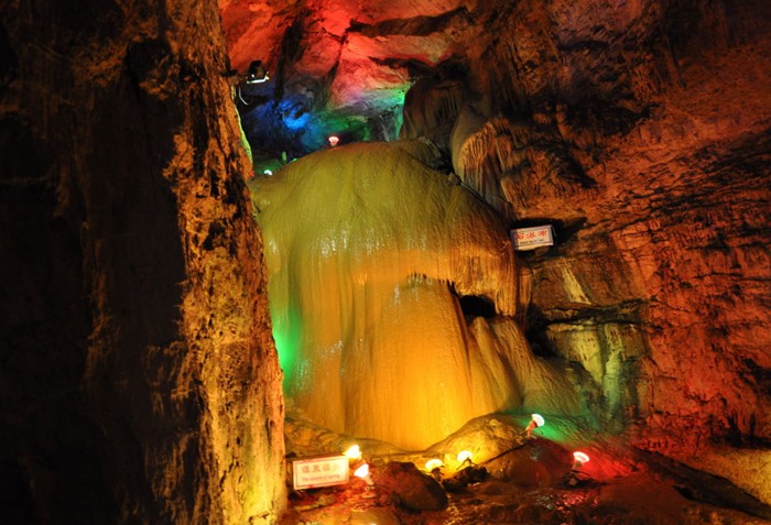 開元溶洞是一條廊道廳堂式洞穴,全長1280米,最高和最寬的地方達(dá)30米。由8個(gè)大廳組成,大小百余處景點(diǎn)景物供游客觀賞。各廳中均各具特色的采用中國先進(jìn)的電光源技術(shù)進(jìn)行燈光布局,給人們帶來不同的視覺效果。