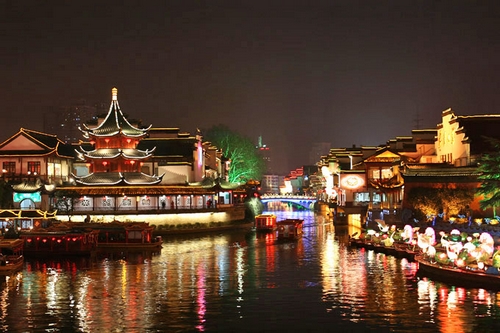 “十里秦淮千年流淌,六朝勝地今更輝煌”,江澤民總書記視察時的題詞,對夫子廟秦淮風光帶作了生動形象的概括。