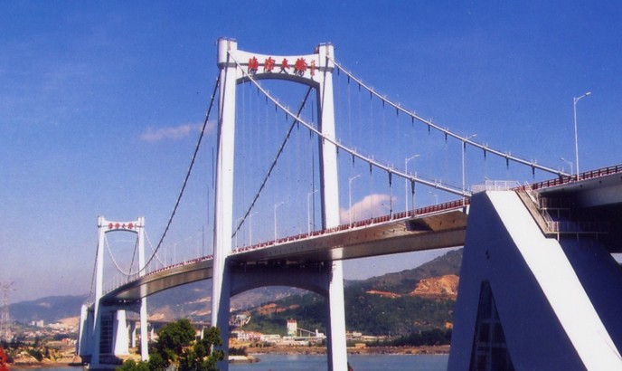 廈門(mén)海滄大橋是世界第二、亞洲第一座特大型三跨連續(xù)全漂浮鋼箱梁懸索橋,也是廈門(mén)市歷史上投資最大的交通工程項(xiàng)目,工程全長(zhǎng)5926.527米,主跨648米,海滄大橋設(shè)計(jì)通行能力為50000輛/日,行車(chē)時(shí)速為80公里/時(shí),工程概算總投資28.7億人民幣。