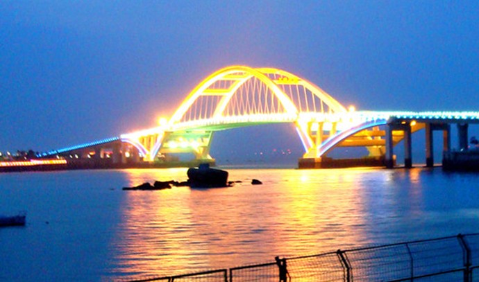 從東渡港牛頭山跨過(guò)火燒嶼,到海滄石塘的排頭門(mén),架起了一座亞洲第一的海滄大橋,營(yíng)造出廈門(mén)一處新的景觀。
