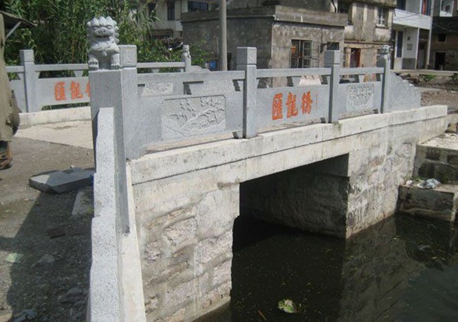 匯龍橋面的兩側均有石欄桿,高88厘米,望柱42根,欄板80塊,均有美女、壽桃、龍珠等樣的石刻浮雕,現尚存66幅。橋兩端原有的四座石獅和望柱頂端的石刻均毀于1966年。匯龍橋的東首北側原有石碑兩方,碑文記載此橋建于明朝萬歷年間,重修于清道光十年(1830年),碑石已于1976年挪作他用。