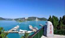 日月潭位于南投縣魚池鄉水社村,是臺灣唯一的天然湖,由玉山和阿里山之間的斷裂盆地積水而成。湖面海拔760米,面積約9平方千米,平均水深30米,湖周長約35千米。日月潭四周群山環抱,重巒迭嶂,潭水碧波晶瑩,湖面遼闊,群峰倒映湖中,優美如畫。每當夕陽西下,新月東升之際,日光月影相映成趣,更是優雅寧靜,富有詩情畫意。日月潭中有一小島遠望好像浮在水面上的一顆珠子,名珠子嶼(光華島),以此島為界,北半湖形狀如圓日,南半湖形狀如彎月,日月潭因此而得名。