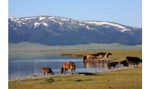 湖水系高山溶雪匯集而成,水深近百米,清純怡人。每到盛夏,湖周綠草如茵,繁花似錦,最為明艷。即使是盛夏天氣,湖水的溫度也相當低,乘游艇在湖面上行駛,一陣陣涼風吹來,暑氣全消,是避暑的好地方。