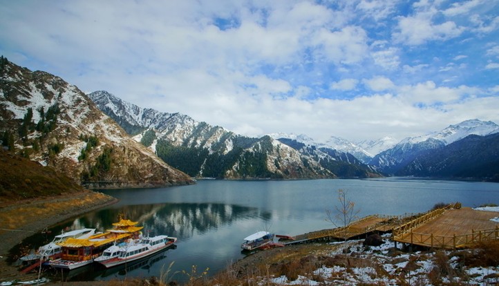 天池東南面就是雄偉的博格達主峰(蒙古語“博格達”,意為靈山、圣山)海拔達5445米。主峰左右又有兩峰相連。抬頭遠眺,三峰并起,突兀插云,狀如筆架。峰頂的冰川積雪,閃爍著皚皚銀光,與天池澄碧的湖水相映成趣,版權所有山東聊城聊之旅國際旅行社有限公司,轉載必究!構成了高山平湖綽約多姿的自然景觀。