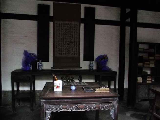 進入大門,首先映入眼簾的是前中共中央總書記胡耀邦瞻仰周恩來故居時親筆題寫的四個大字:“全黨楷模”。向北不幾步就是周恩來小時候讀書處——家塾館。里面有周恩來當年用過的單人學(xué)桌。在這張學(xué)桌上,他以不同尋常的聰穎和智慧,經(jīng)常和同窗共讀的同輩兄弟用方塊字做聯(lián)句、拼詩的“益智游戲”。