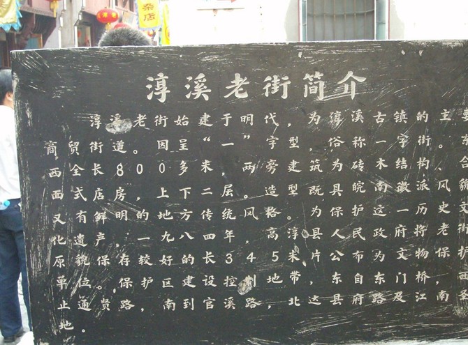 高淳淳溪老街位于高淳的商業中心。它自宋朝正式建立街市,至今已有900余年的歷史,如今那兒房屋新舊交替?,F存的建筑物多為明清所建。這些建筑大多具有鮮明的地方特色和典型的建筑風格。淳溪老街因呈“一”字形,又稱一字街。其全長345米,寬4.5-5.5米不等,中間用粉紅色的胭脂石橫向鋪設,兩邊用青條石縱向圍繞,整條街面色鮮艷,整齊美觀,歷經八百年風吹雨打,人行車壓,依然是“赤心未改”,堅固耐用。