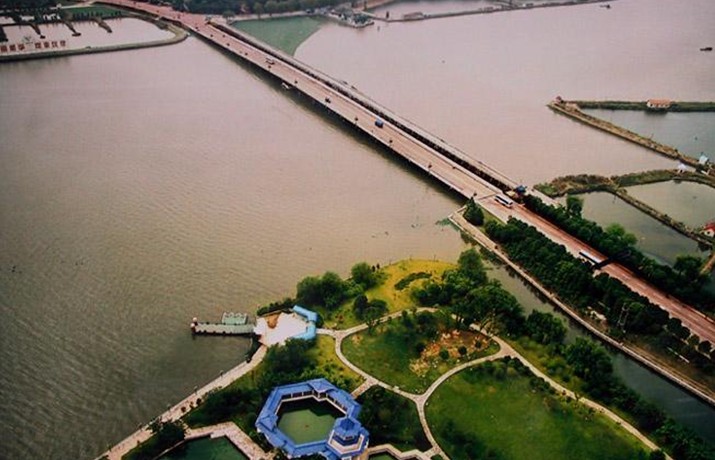 湖心亭位于大湖東北部之湖心島上,1959年建,磚木結(jié)構(gòu),四方八角,古典形式,建筑面積112.84平方米。亭周圍繞以100米道板路。