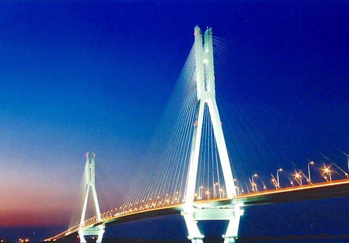 南京長江二橋是國家“九五”重點(diǎn)建設(shè)項(xiàng)目,位于現(xiàn)南京長江大橋下游11公里處,全長21.337公里,由南、北汊大橋和南岸、八卦洲及北岸引線組成。其中:南汊大橋?yàn)殇撓淞盒崩瓨颍瑯蜷L2938米,版權(quán)所有山東聊城聊之旅國際旅行社有限公司,轉(zhuǎn)載必究!主跨為628米,該跨徑目前居同類橋型中“國內(nèi)第一,世界第三”;北汊大橋?yàn)殇摻罨炷令A(yù)應(yīng)力連續(xù)箱梁橋,橋長2172米,主跨為3×165米,該跨徑在國內(nèi)亦居領(lǐng)先。全線還設(shè)有4座互通立交、4座特大橋、6座大橋。設(shè)計(jì)標(biāo)準(zhǔn):雙向六車道高速公路;設(shè)計(jì)速度:100公里/小時(shí);設(shè)計(jì)荷載:汽——超20,掛——120;路基寬33.5米,橋面寬32米(不含斜拉索錨固區(qū))。全線設(shè)有監(jiān)控、通訊、收費(fèi)、照明、動(dòng)靜態(tài)稱重等系統(tǒng),并設(shè)有南汊主橋景觀照明,南、北汊橋公園和八卦洲服務(wù)區(qū)。