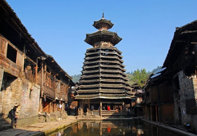 鼓樓頂層上安放在康熙南巡“戒碑”兩邊的一對龍鳳亭,相映成輝,古樸典雅,供游人觀賞。龍鳳亭高4米、圓3.5米,外觀呈塔形。亭為六角七級二層萊結構,外鍍金鉑,金光熠熠。龍鳳亭各級都有極精細雕刻的人物或植物、動物畫。從下至上,四級為人物,皆為武士出征,三國故事人物等;三級為花鳥,有葵花、天竹、青松、芭蕉、萬年青等。花鳥中還有虎豹、蛇蟲與之為伍;二層隔離刻有六大騎士,六根亭支架上,鳳上龍下,六龍抱柱,六鳳呈祥;亭子上部由飛鶴、荷花蓋頂。整個亭子,呈現出一幅幅優美圖畫,造型緊湊協調,生動精美,其雕刻工藝極為精湛,為世人所稱贊,具有極高的觀賞價值。