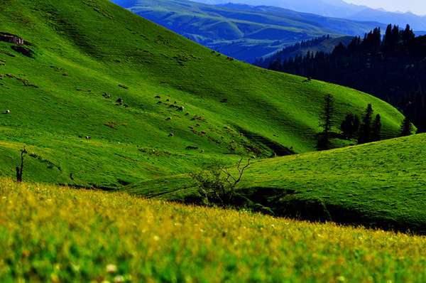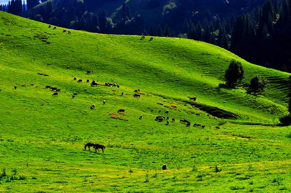 那拉提草原是發(fā)育在第3紀(jì)古洪積層上的中山地草場(chǎng),東南接那拉提高嶺,勢(shì)如屏障,西北沿鞏乃斯河上游谷地?cái)嗦洌貏?shì)大面積傾斜,山泉密布,溪流縱橫。版權(quán)所有山東聊城聊之旅國(guó)際旅行社有限公司,轉(zhuǎn)載必究!緣山腳沖溝深切,河道交錯(cuò),森林茂密,莽原展緩起伏,松塔沿溝擎柱,還有氈房點(diǎn)點(diǎn),畜群云移,是鞏乃斯草原的重要夏牧場(chǎng)。