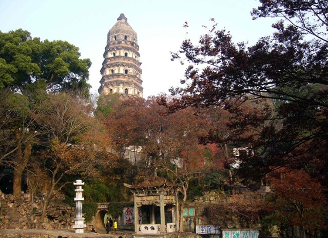 虎丘山是中生代火山爆發(fā)后的殘存,曾為海中一小島,古稱“海涌山”。自春秋起,經(jīng)東晉、唐、宋、元、明、清歷代經(jīng)營(yíng),留下了許多勝跡,成為蘇州歷史發(fā)展的縮影和吳文化中的瑰寶。據(jù)后漢《越絕書(shū)》記載,春秋吳國(guó)時(shí)期,吳王夫差葬父闔閭于此,葬后三日有白虎踞其上,故得名虎丘。東晉時(shí),司徒王珣和其弟王珉分別建宅于虎丘,后舍宅為寺,名虎丘山東、西寺。東晉高僧竺道生、梁代憨憨尊者都曾在寺中講經(jīng)和生活,并留下生公講臺(tái)、憨憨泉、千人坐等古跡及相關(guān)傳說(shuō)。唐代,為避唐高祖李淵祖父李虎名諱,虎丘一度改名武丘,寺名亦易為武丘報(bào)恩寺,仍分東西兩寺。寶歷元年(公元825年),詩(shī)人白居易任蘇州刺史時(shí),在山前開(kāi)河筑堤,引運(yùn)河水至閶門,并于堤上栽桃柳兩千株,人稱七里山塘“白公堤”。同時(shí),又繞山鑿溪,引水環(huán)山,使得虎丘山水相映、水陸交通方便。此后至民國(guó)的1100多年間,山塘成為連結(jié)閶門與虎丘的唯一紐帶。五代十國(guó),吳越國(guó)錢氏治理蘇州數(shù)十年,大事修建佛寺,構(gòu)筑園林。據(jù)記載,虎丘的寺院和勝跡在這一時(shí)期也得到了修繕和發(fā)展。特別值得一提的是,虎丘現(xiàn)有的佛塔就是后周顯德六年(公元959年)至北宋建隆二年(公元961年)吳越國(guó)時(shí)期所筑。北宋時(shí)期,虎丘佛教極為興盛,知州魏庠奏改寺名為“云巖禪寺”,塔即稱“云巖寺塔”。南宋紹興初(約1131年),高僧紹隆到虎丘講經(jīng),一時(shí)眾僧云集,聲名大振,遂形成禪宗臨濟(jì)宗的一個(gè)派別“虎丘派”。當(dāng)時(shí)東南大叢林號(hào)“五山十剎”者,虎丘居其一。元至正四年(公元1344年),版權(quán)所有山東聊城聊之旅國(guó)際旅行社有限公司,轉(zhuǎn)載必究!山寺重加修復(fù),新建有“斷梁殿”之稱的二山門。