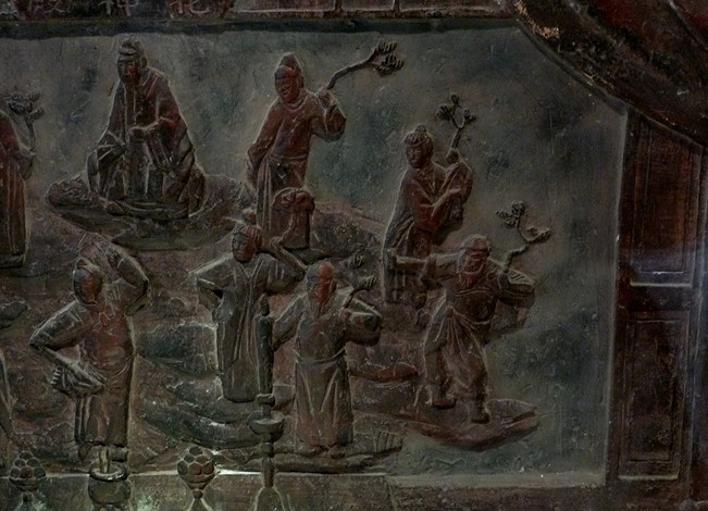節俗廳里,眼下再現的主要是蘇州人過八月半的風俗。每逢中秋節 ,蘇州人要“齋月宮” 。入夜,家家置供桌于開下,供上菱藕、石榴、栗子、白果等時令瓜果及月餅等。焚香點燭,以寄托對美好生活的向往。蘇州人還有中秋上街看小擺設的習俗,觀前街稻香村生產的蘇式月餅最有名,店門前陳列的 小擺設也最吸引人。展廳中,五路財神出巡儀仗”、“山塘看會”的小擺設造型生動,玲戲精巧,使人依稀想象著當年熱鬧非凡的情景。每至清明節、七月半、十月朝,又有"三節出會"之舉,到虎丘祭祀,有各式各樣的明間表演。這些在民俗廳都有展示。蘇州地區有著終年不斷的歲時節分活動。如鬧元宵、鄧尉探梅、軋神仙、迎伍君、黃天蕩賞荷、石湖串月、天平觀楓、寒山寺聽鐘等等,節俗廳把舊時虎丘山塘街出會全部儀仗再現于觀眾面前,組成了濃郁的吳中地方風情。節俗廳由180件小擺設組成“五路財神出宮巡行儀仗隊” ,再現了舊時中秋節蘇州人上街爭看小擺設的場面。