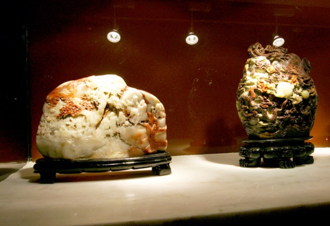 巴林奇石館館藏的“雞血石王”價值連城,雞血石王重34公斤,高51厘米,寬34.7厘米,厚27.4厘米,呈朱砂血紅,若雞血潑灑,鮮紅悅目,晶瑩欲滴,點點入石。此石墨赤分明,血色鮮艷欲滴,無論質(zhì)地、斑紋、血色、光澤,凡上乘石料所具有的優(yōu)秀品格都集于一身,身價近億元,是巴林奇石館的鎮(zhèn)館之寶。