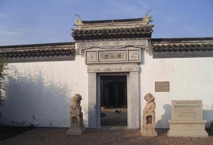 徐霞客(1587—1641年)為我國杰出的旅行家和地理學(xué)家,故居在江陰馬鎮(zhèn)南岐村(為紀(jì)念偉人,馬鎮(zhèn)已改名為“霞客鎮(zhèn)”)。明末遭兵燹,清順治年間徐之侄孫徐君銓重建。至1984 年,僅存面闊七間二進(jìn)瓦房,1985年,政府撥款大修。現(xiàn)有三進(jìn)、十七間正房、兩間廂房,占地二畝。大門正面懸“徐霞客故居”匾額,兩邊立盤陀石。門背面鐫“繩其祖武”磚額。