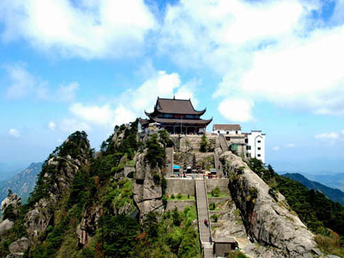 坐落在安徽省,是地藏菩薩的道場,中國四大佛教名山之一,全國著名游覽避暑勝地。九華山北俯長江,南望黃山,東監(jiān)太平湖。 它以佛教文化習(xí)俗和奇麗的自然風(fēng)光享譽海內(nèi)外,尤其在東南亞華人世界更具盛名。 九華山素有九十九峰之稱,千米以上的高峰20多座,為首的是十王峰。天臺,天柱,獨秀,花臺,云外峰如臺似柱,聳入云霄;蓮花,芙蓉,翠屏,以微,翠蓋峰有芙蓉出水之姿“間聳航”,“雄叫天門”等茂石更是神工鬼斧。山間秀溪縈環(huán),銀瀑飛,景色迷人。優(yōu)美傳奇的舒印月和九子泉聲更富山水之情,給人以美的享受。古稱陵陽山、九子山,唐天寶年間改名九華山;因有九峰形似蓮花而得名