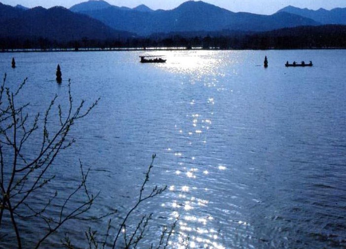 在中秋月明之夜,到西湖泛舟,領略“煙籠寒水月籠紗”的美境是最愜意的事。三個石塔,亭亭玉立在碧波蕩漾的湖面上。燈光從塔中透出,宛如一輪輪明月,倒影在湖中。皓月當空時,月光、燈光和湖光交相輝映,月影、塔影、云影相互映襯,畫出一幅“一湖金水欲溶秋”的美景,讓人流連往返。 此時的空中月、水中月、塔中月與賞月人的心中月相輝映,神思遄飛,一向為游客所心儀,三潭印月因此得名。