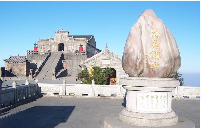 衡山為南中國的宗教文化中心,中國南禪、天臺宗、曹洞宗和禪宗南岳、青原兩系之發(fā)源地。南方最著名的道教圣地,有道教三十六洞天之第三洞天——朱陵洞天,道教七十二福地之青玉壇福地、光天壇福地、洞靈源福地。