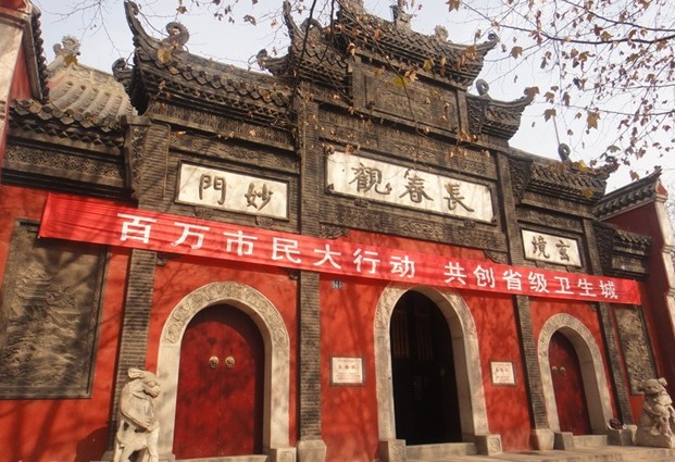 該觀建于元代,為邱處機門徒所建,以紀念道教全真派北七真之一,龍門宗的創始人丘處機(公元1148年-1227,字通密,號長春子)在元軍南下時“一言止殺“濟世救民之勸德。始稱“長春觀”。