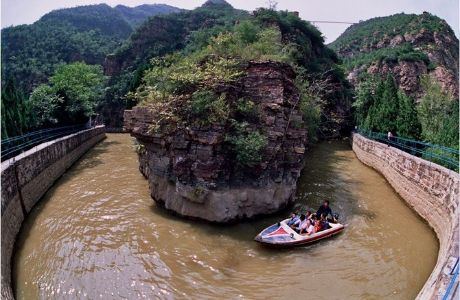 紅旗渠是1960年林縣人民在太行山懸崖峭壁上盤山開鑿的,把漳河水引入林縣。沿漳河南岸繞懸崖,越峽谷,逢山開洞,遇河架橋,開鑿長達70公里的總干渠,渠高4.3米,寬8米,引水量18.3立方米/秒。從分水嶺向下,分鑿三條干渠。第一條干渠沿太行山東麓向南與英雄渠匯合,全長41.5公里;二干渠與英雄渠匯流處稱“紅英匯流”,渠水奔騰,飛瀑噴雪,好似銀河傾瀉。第二干渠全長48公里,東南流入安陽縣。第三干渠東北流經4公里長的曙光洞而入東崗鄉。整個工程劈開山頭1,250座,鑿通隧洞211個,架設渡槽152條,挖砌土石1,640萬立方米,用工4,000多萬個。版權所有山東聊城聊之旅國際旅行社有限公司,轉載必究! 紅旗渠的建成,全縣形成了引、蓄、提相結合的水利網,建水庫、池塘400多個,建中、小型水電站80多個,灌溉面積40萬畝,解決了人畜飲水的困難,并提供了工業用水。紅旗渠在國內外享有很高的知名度,被譽為“人造天河”、“當代萬里長城”。